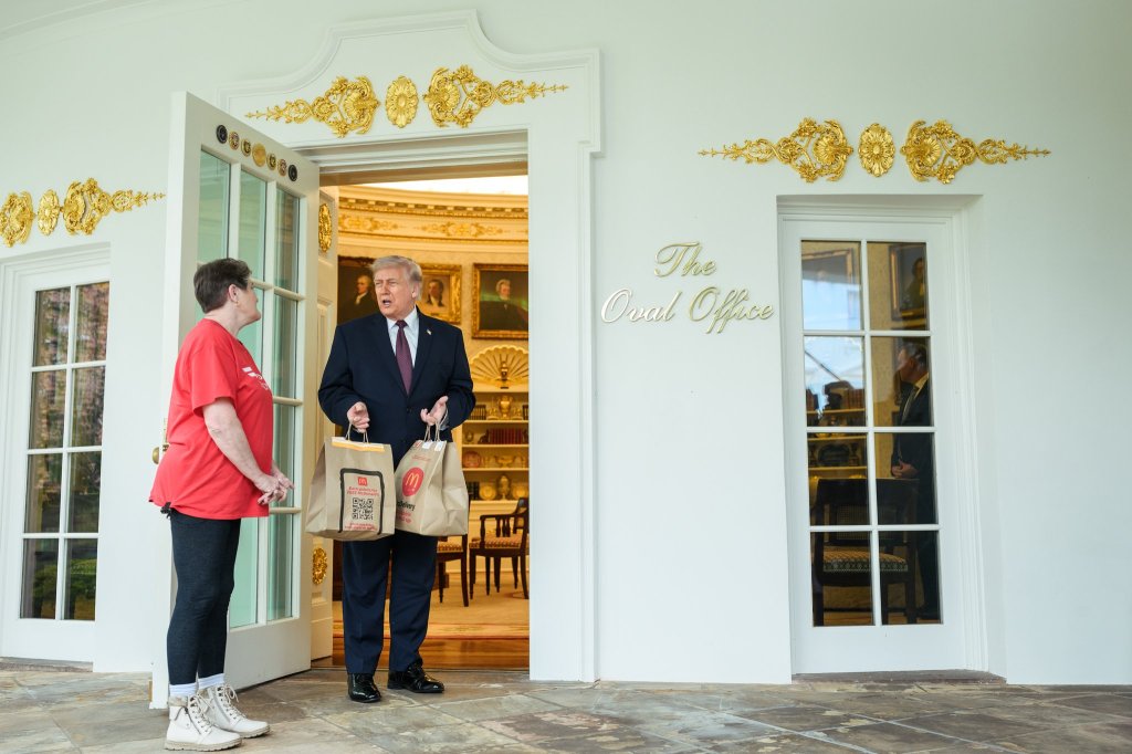 Algo que se ve pocas veces, el presidente estadounidense recibiendo un pedido de McDonald’s en el Despacho Oval y hablando con reporteros sobre la guerra en Irán, criticando al papa León XIV y sobre la polémica imagen que publico donde aparece como Jesús.